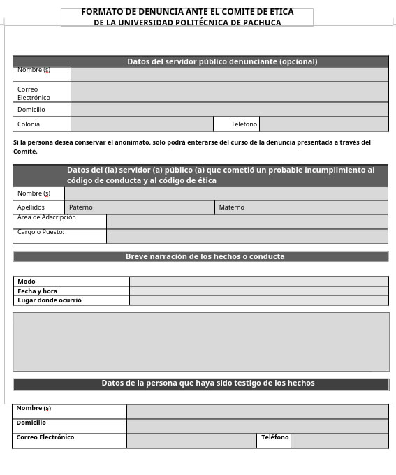Descarga el formato denuncia CEPCI en siguiente enlace: FORMATO DE DENUNCIA