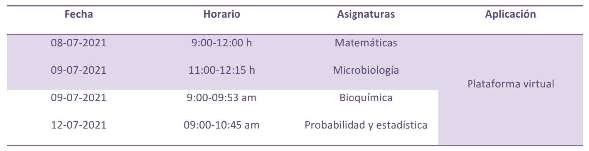 | - | Fechas y horarios de aplicación de los exámenes de conocimientos de la convocatoria 2021:![]() |