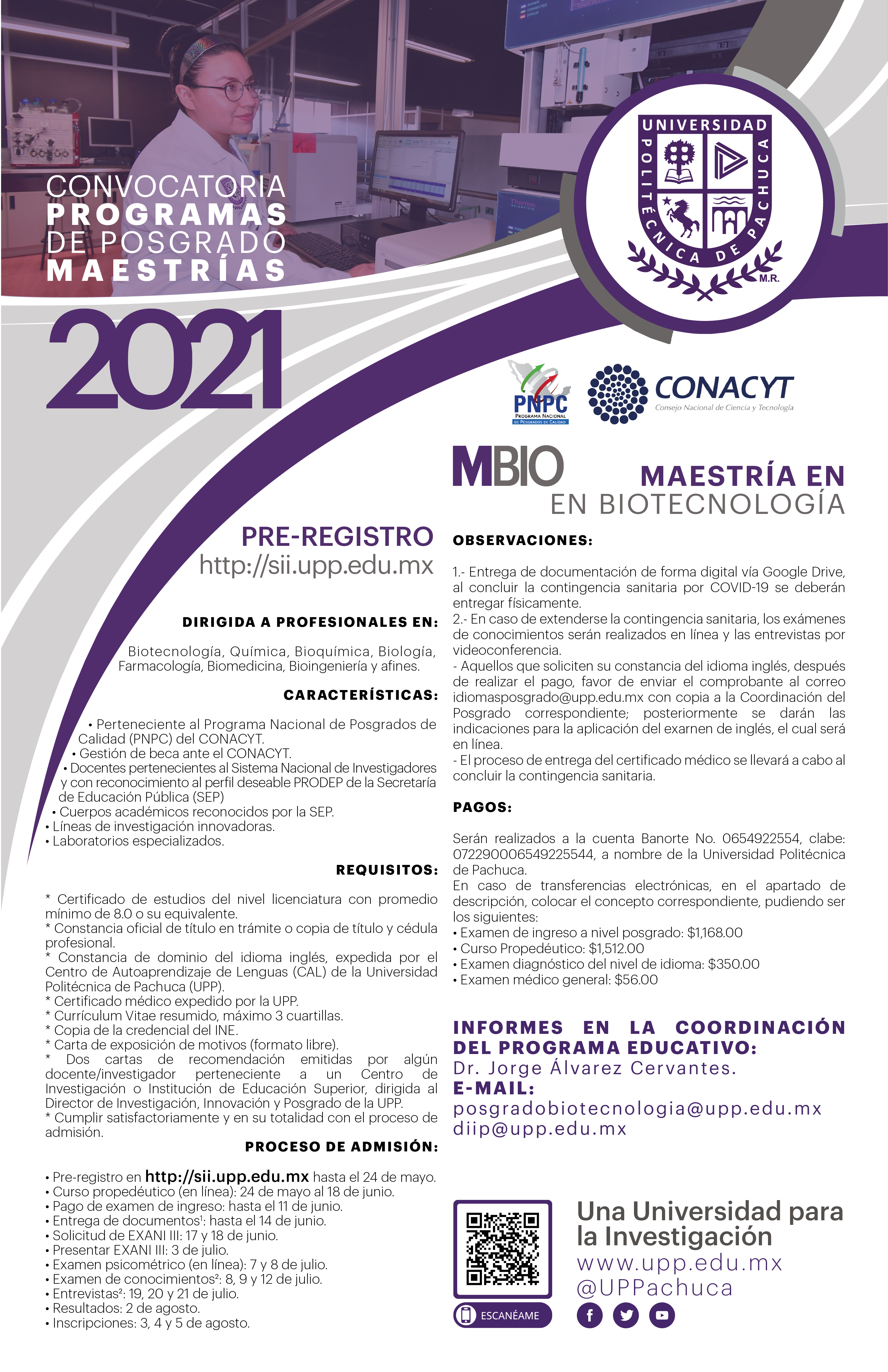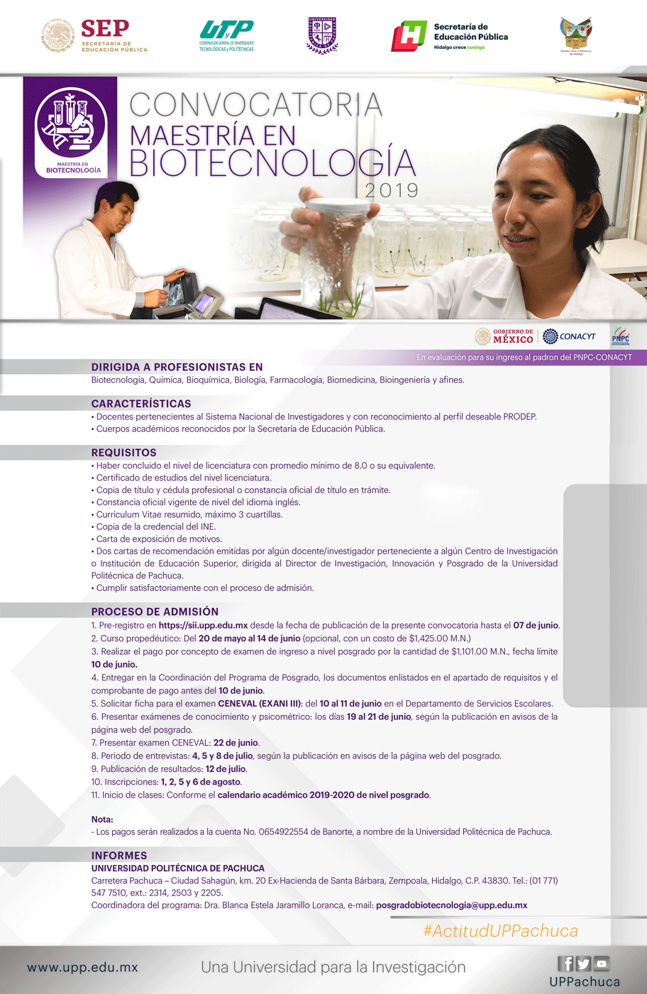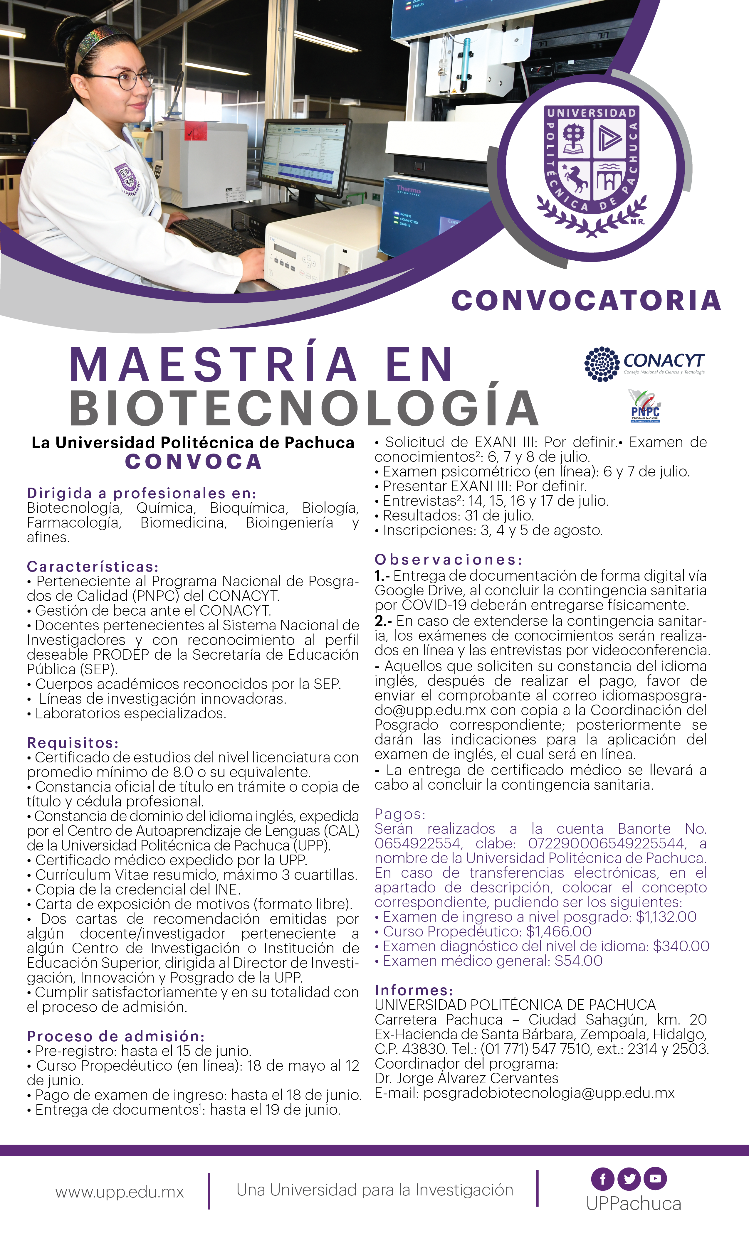 | - | Curso propedéutico para los aspirantes a la Maestría en Biotecnología | 6/Mayo/2020 |