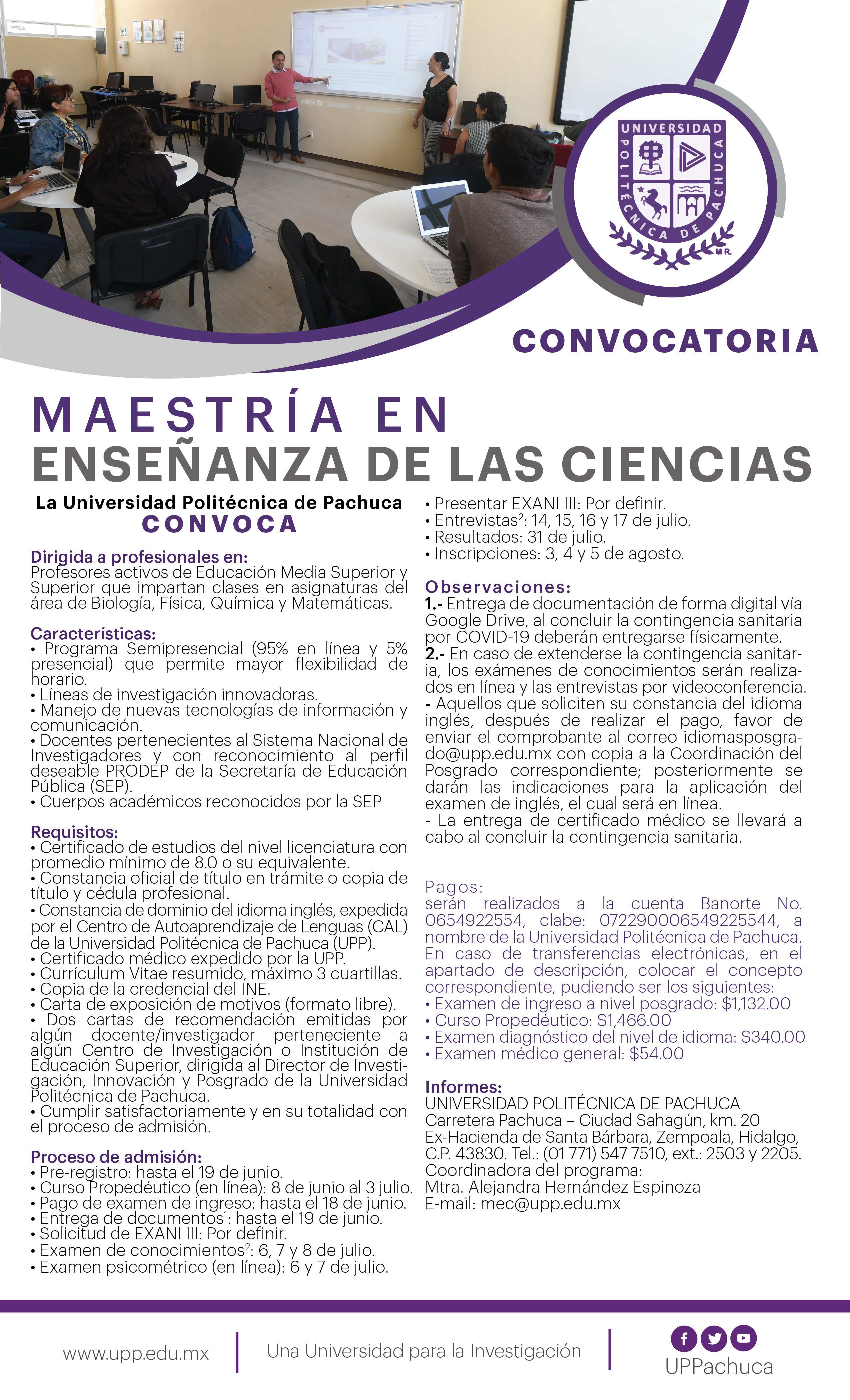 | - | Examen psicométrico: a partir de las 08:00hrs. del 06 de julio hasta las 23:00hrs. del 07 de julio 2020. Liga: http://psicometricos.upp.edu.mx/ | Julio 2020 |
